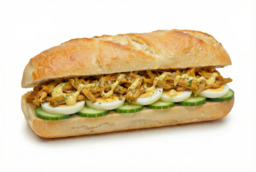 Broodje naar keuze met kipreepjes, komkommer, gekookt ei.