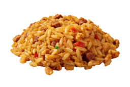 Geserveerd met atjar, kroepoek, satésaus met gebakken uitjes, met daarbij nog de keuze uit nasi, bami of friet met saus naar keuze.